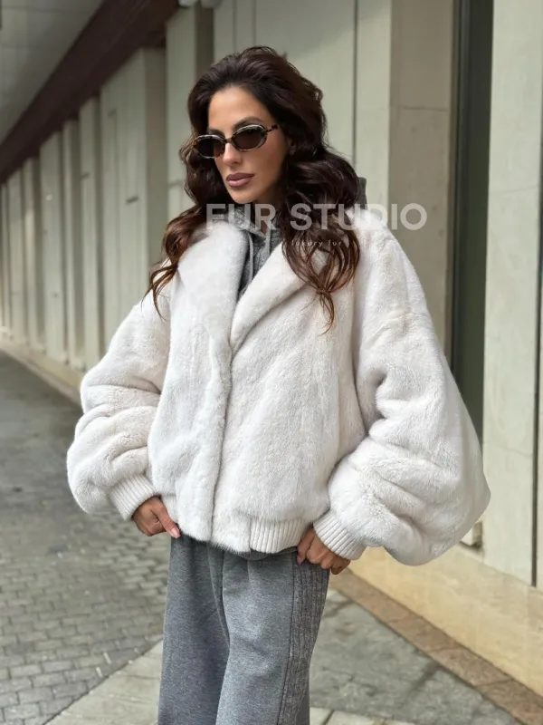 Белый норковый бомбер на резинке 102288
