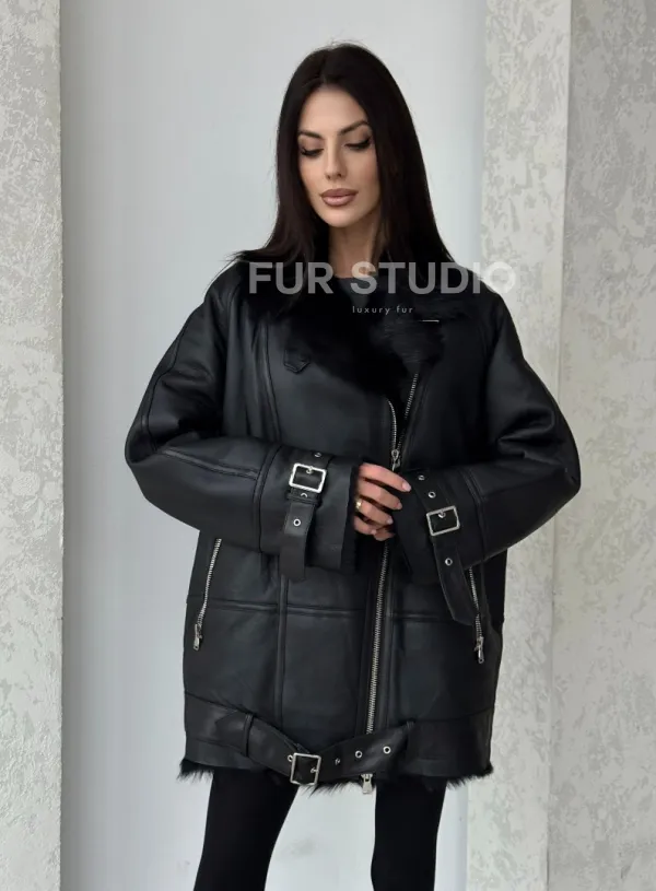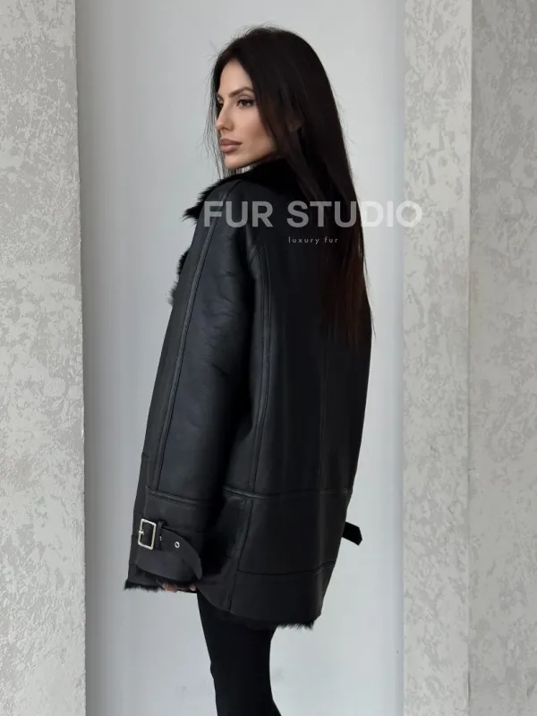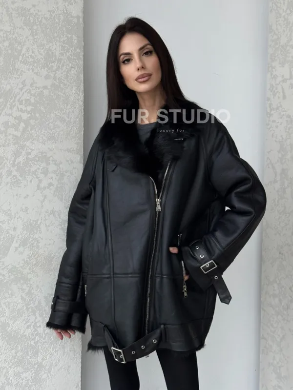 Черная дубленка - авиатор на тоскане 100757