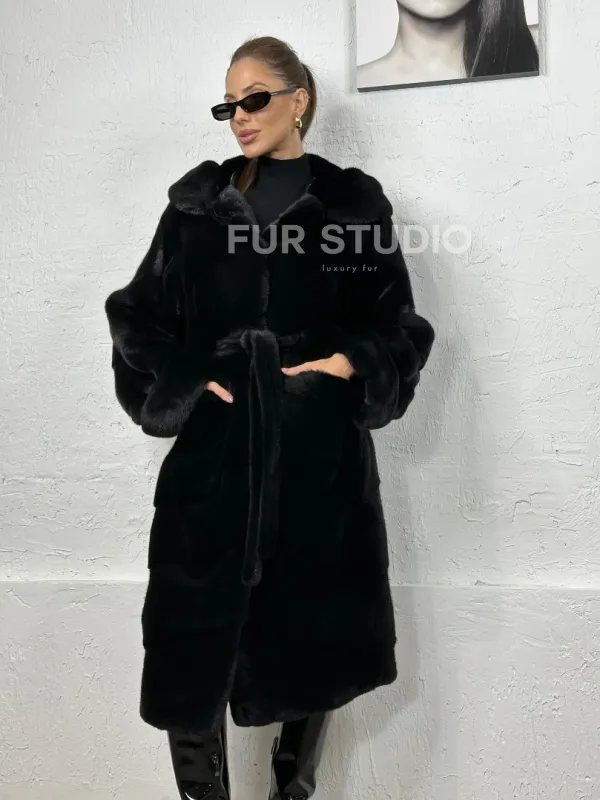 Мех данной шубы аукционная норка , цвет черный. Предлагается в размерах от 42 до 52. Длина модели 110-115 см, что выгодно подчеркивает фигуру девушек. Эта модель идеально подойдет для девушек и женщин, предпочитающих роскошные натуральные меха.