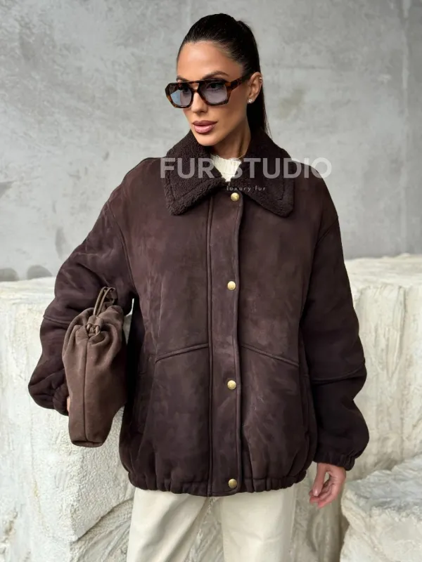 Дубленка бомбер женская. Модель предлагается в размерах от 44 до 48. Оптимальная длина моделей 60-65 см подчеркивает линии вашей фигуры. Эта дубленка станет неотъемлемой частью гардероба для тех, кто предпочитает роскошь и утонченность натуральной кожи.