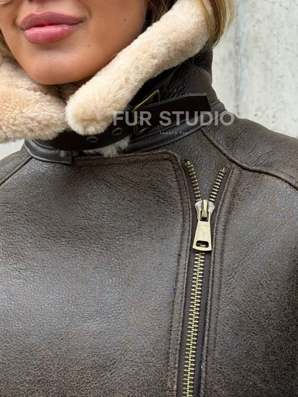 Дубленка - пилот женская. Модель предлагается в размерах от 42 до 48. Оптимальная длина моделей 50-55 см подчеркивает линии вашей фигуры. Эта дубленка станет неотъемлемой частью гардероба для тех, кто предпочитает роскошь и утонченность натуральной кожи.