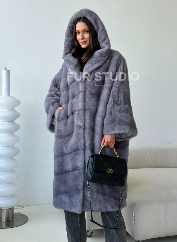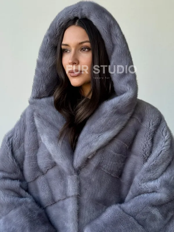 Голубая норковая шуба с капюшоном oversize доступна для покупки в нашем шоуруме Furs Studio в . У нас так же есть доставка во все города России. Добавьте немного роскоши в свой гардероб с этой шубой, которая будет служить вам многие годы.