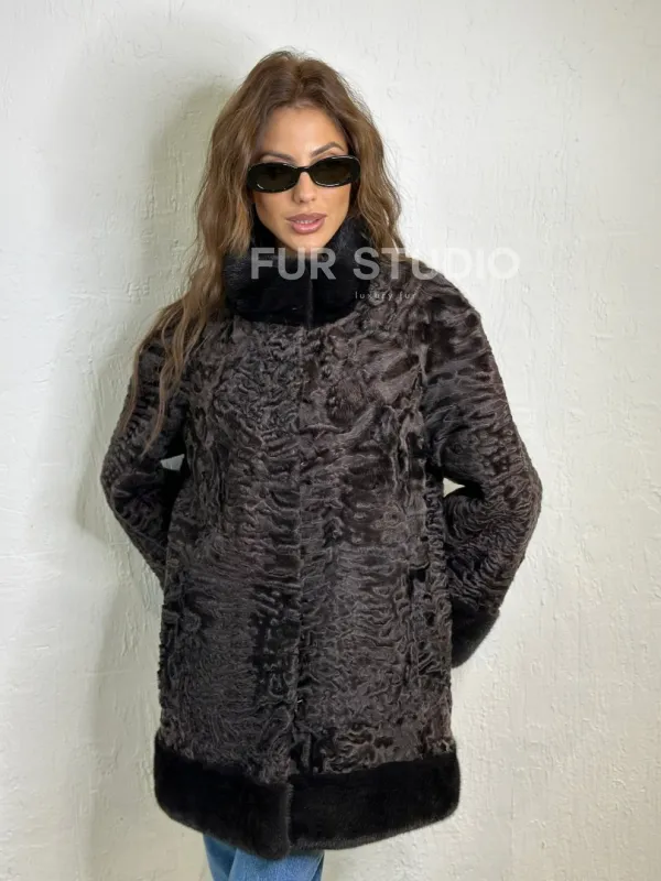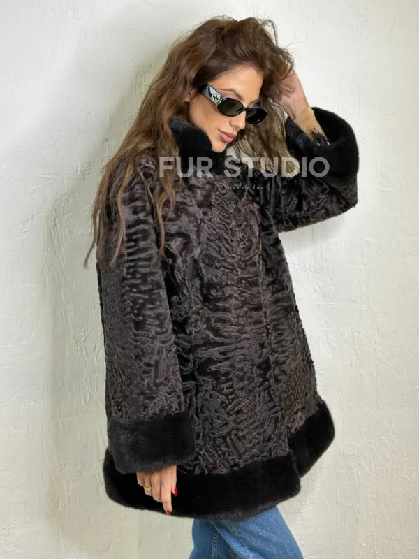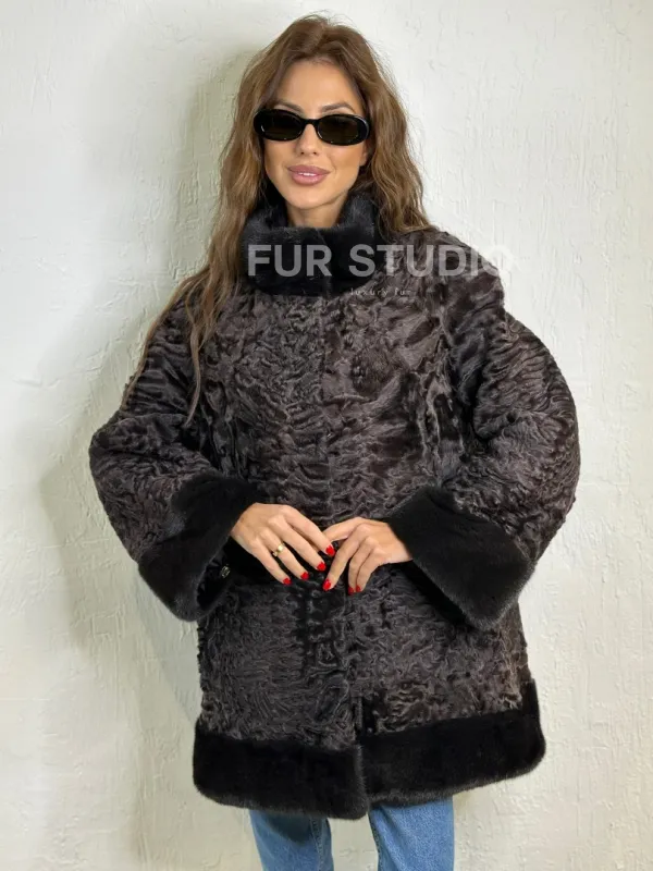 Каракульча стойка воротник отделка норка доступна для покупки в нашем шоуруме Furs Studio в . У нас так же есть доставка во все города России. Добавьте немного роскоши в свой гардероб с этой шубой, которая будет служить вам многие годы.