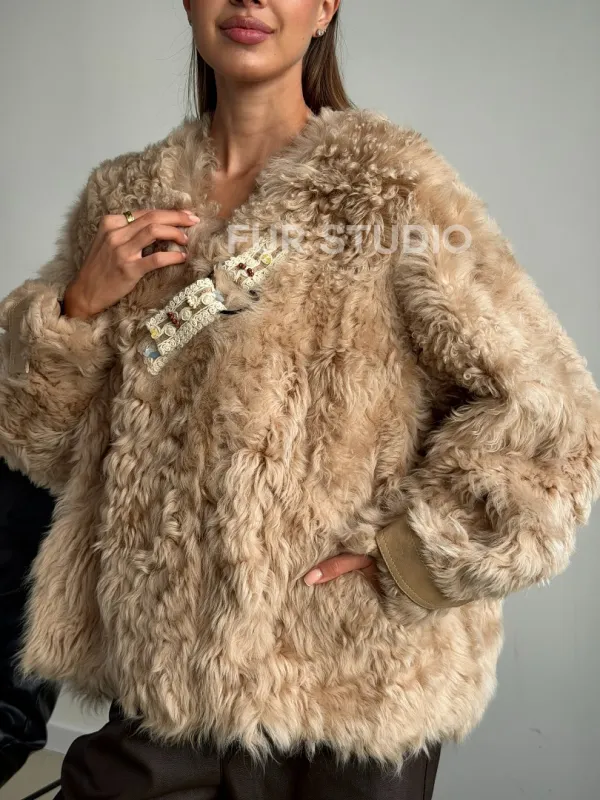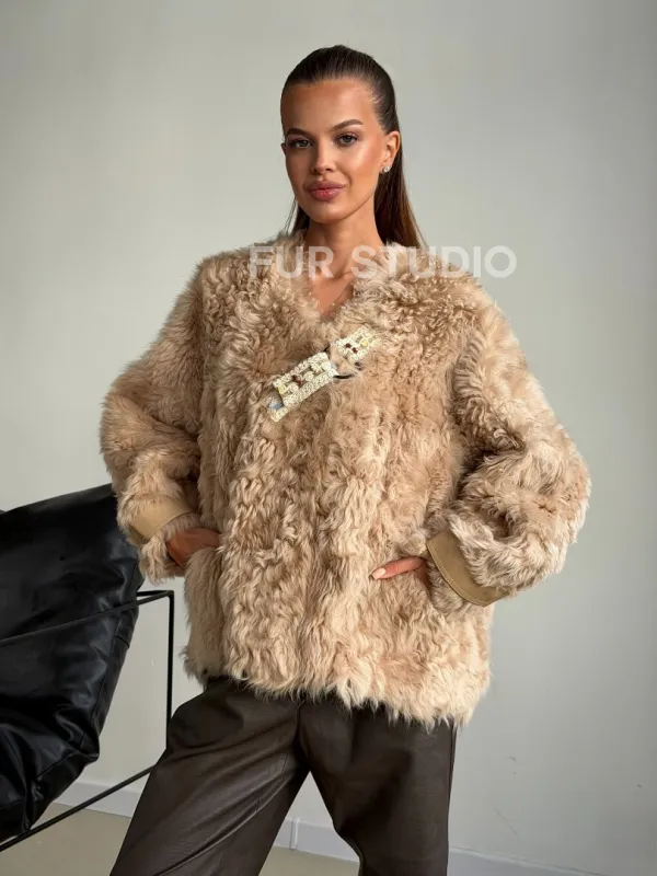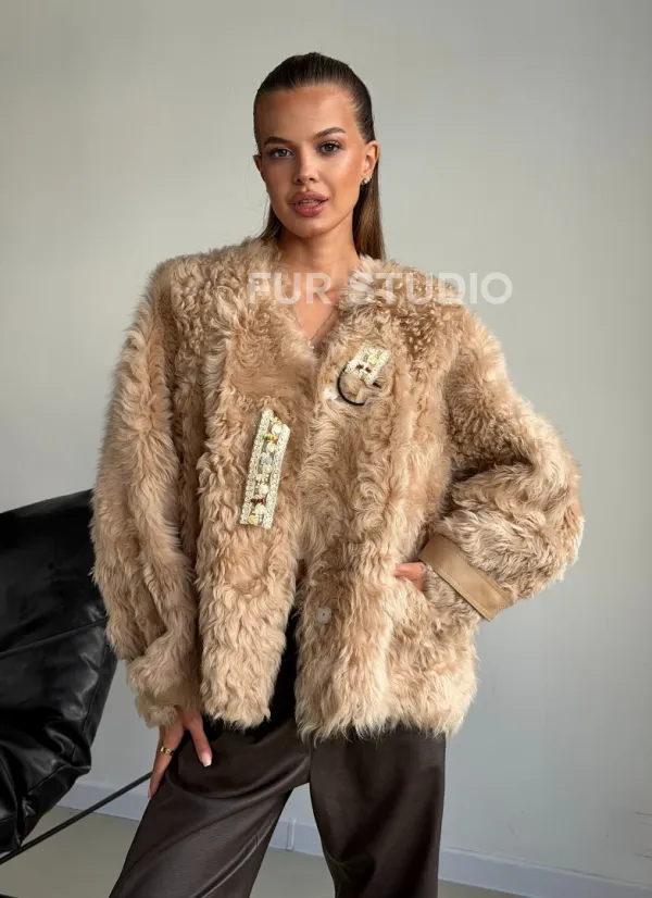 Короткая куртка из овчины доступна для покупки в нашем шоуруме Furs Studio в , а также предлагается удобная доставка во все города России. Обогатите свой гардероб этой дубленкой, которая прослужит вам многие годы, добавив немного роскоши в ваш повседневный образ.