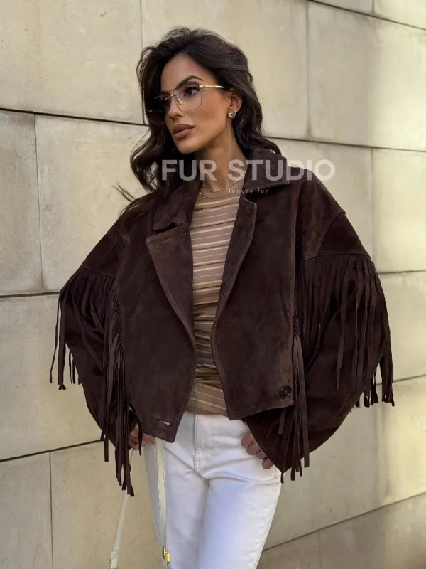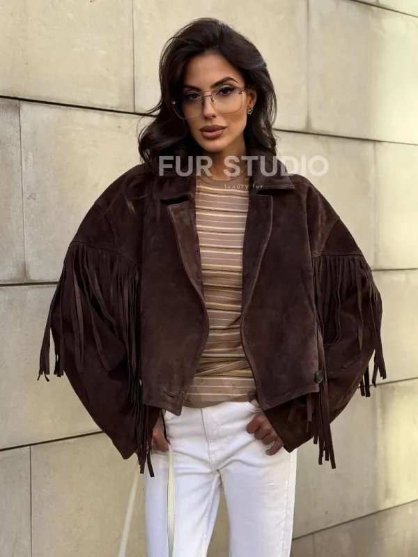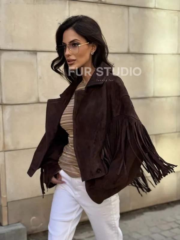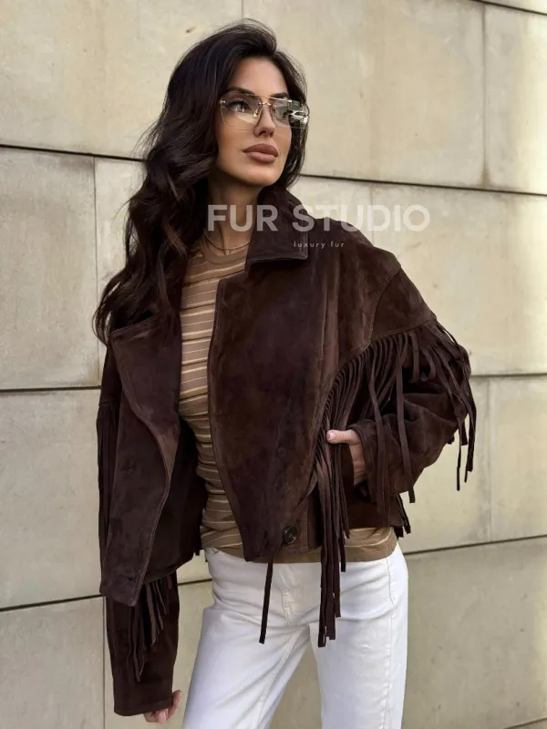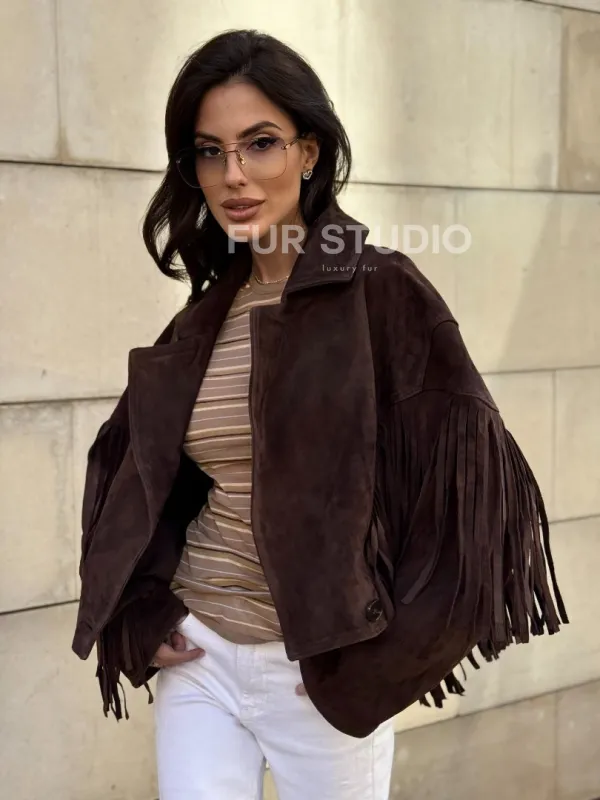 Восхититесь элегантностью и несравненным комфортом с нашей эксклюзивной коллекцией кожаных изделий. Изготовленная из первоклассной натуральной кожи, Кожаная куртка с бахромой не только согреет вас в прохладные дни, но и подчеркнет ваш изысканный вкус. Уникальный дизайн и высокое качество делают наши представленные образцы идеальным выбором для утончённых образов.