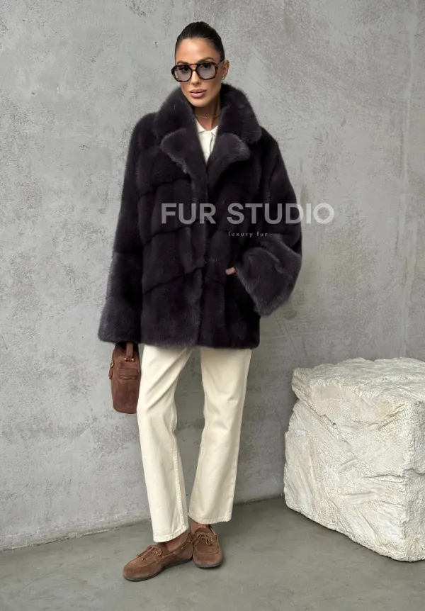 Меховой полушубок из норки графит доступна для покупки в нашем шоуруме Furs Studio в . У нас так же есть доставка во все города России. Добавьте немного роскоши в свой гардероб с этой шубой, которая будет служить вам многие годы.