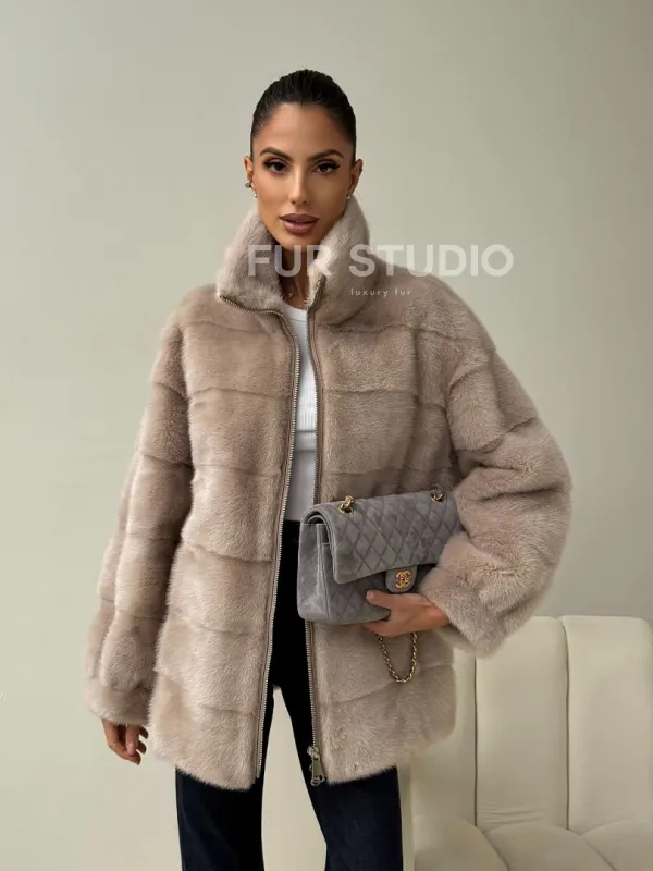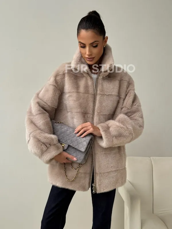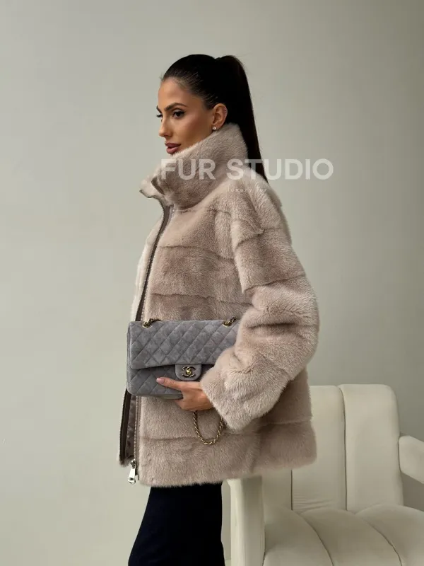 Норковая куртка стойка воротник 102455