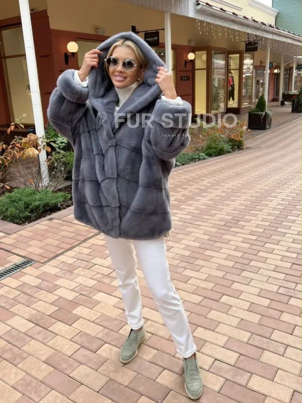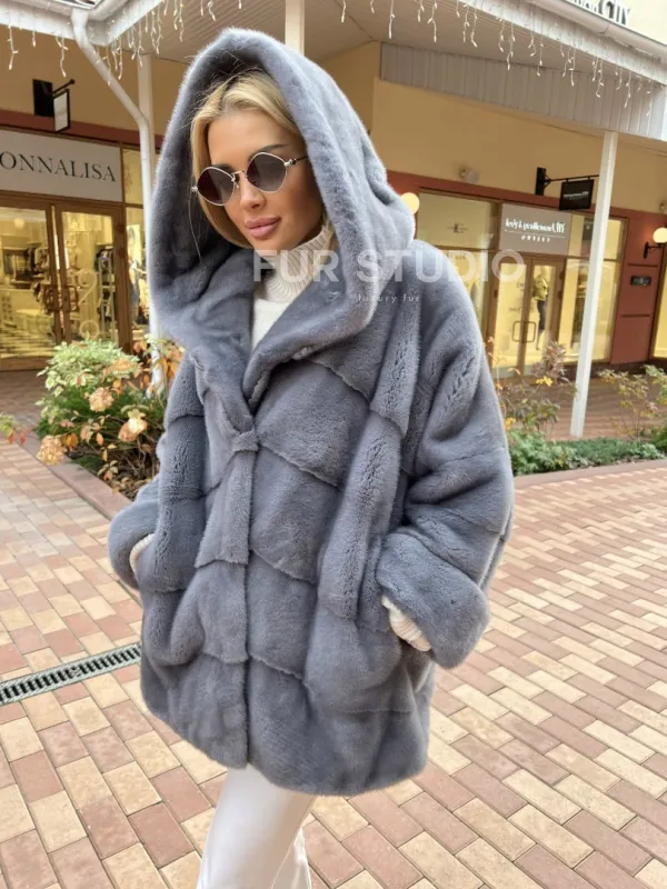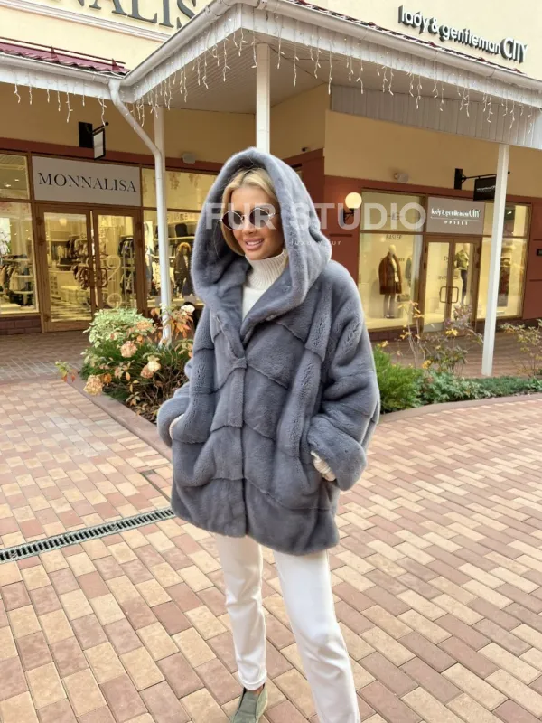 Норковое пончо с капюшоном 100324