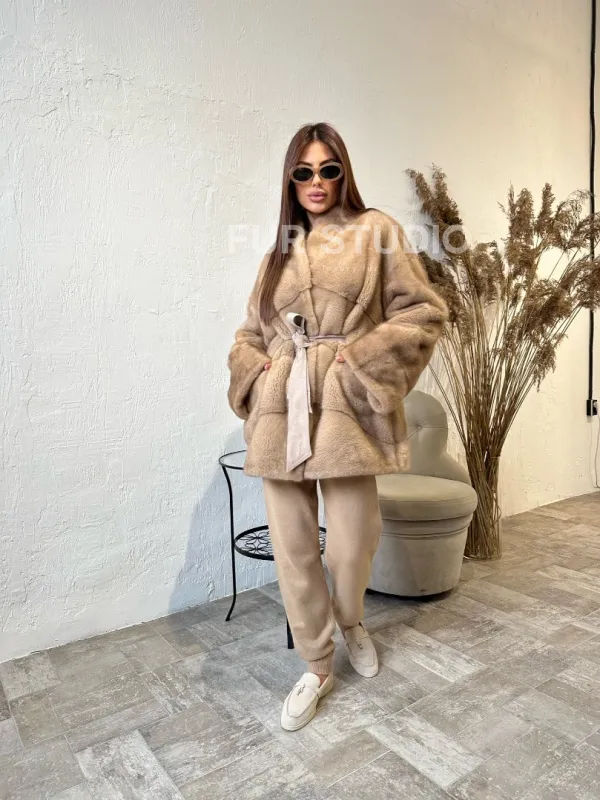 Длина оптимальна и комфортна в носке. Роскошный воротник выделяет изгибы шеи и не согреет в непогоду. Необычный пояс очертит талию и сделает ее тоньше. Модель сочетается с любым гардеробом: от классического стиля до вечерних нарядов. Купить полушубок из меха норки в цвете пастель могут женщины, которые обладают изысканным и тонким вкусом стиля.