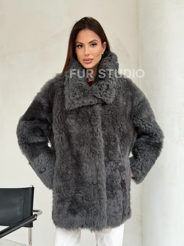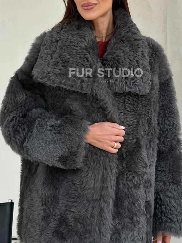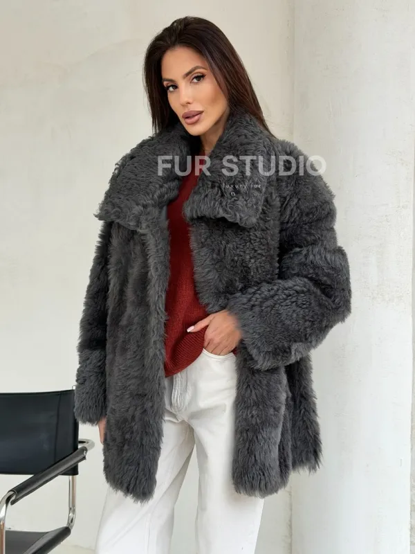 Серая дубленка из тиградо 102682