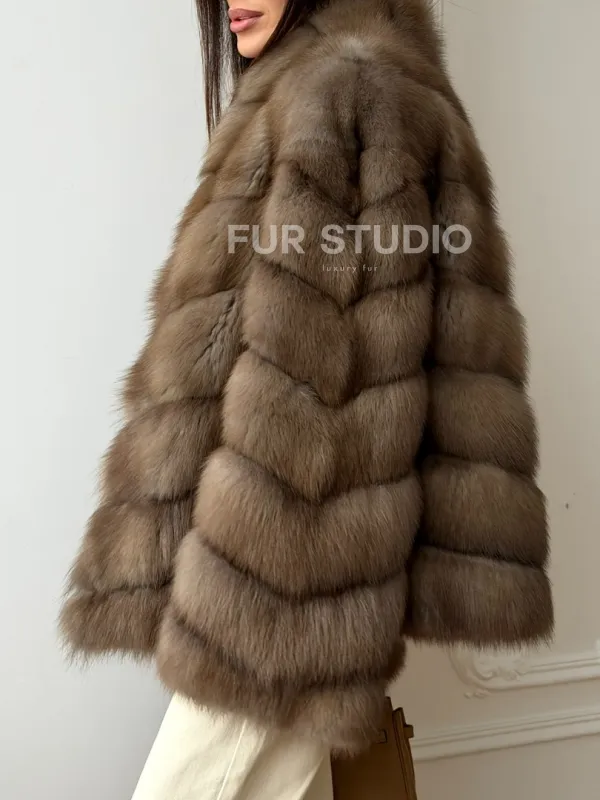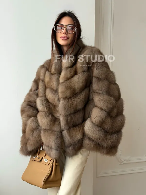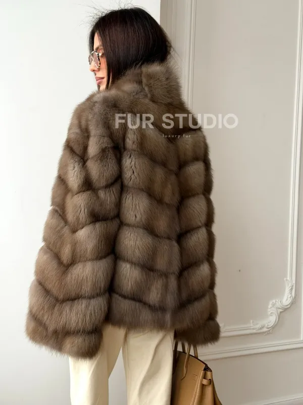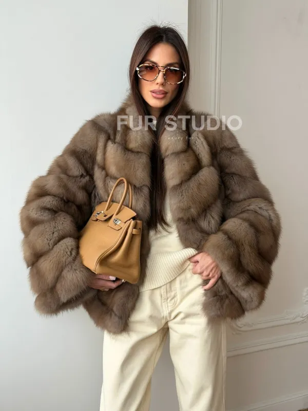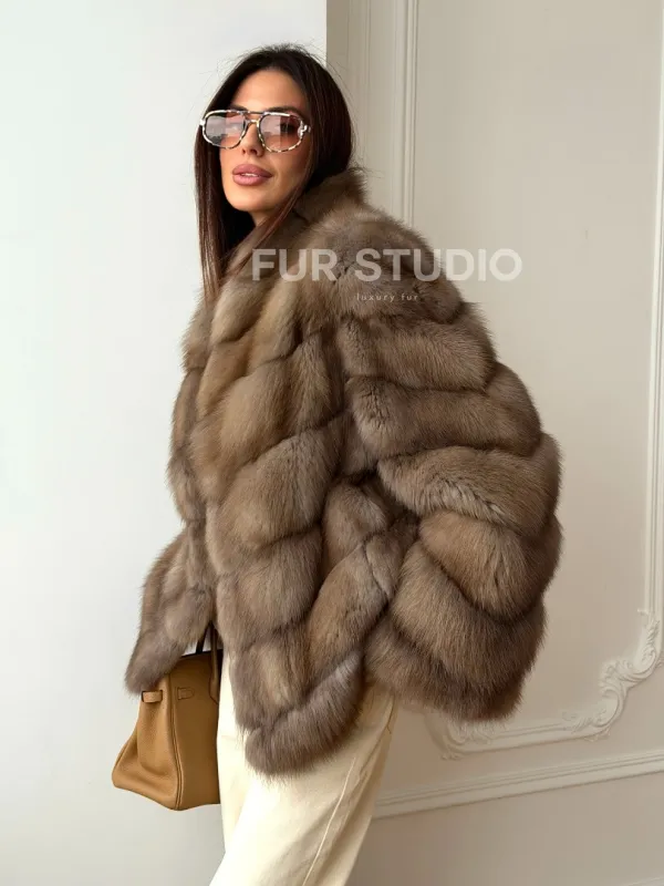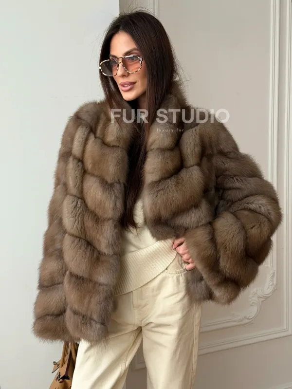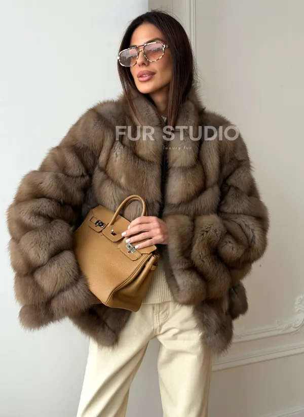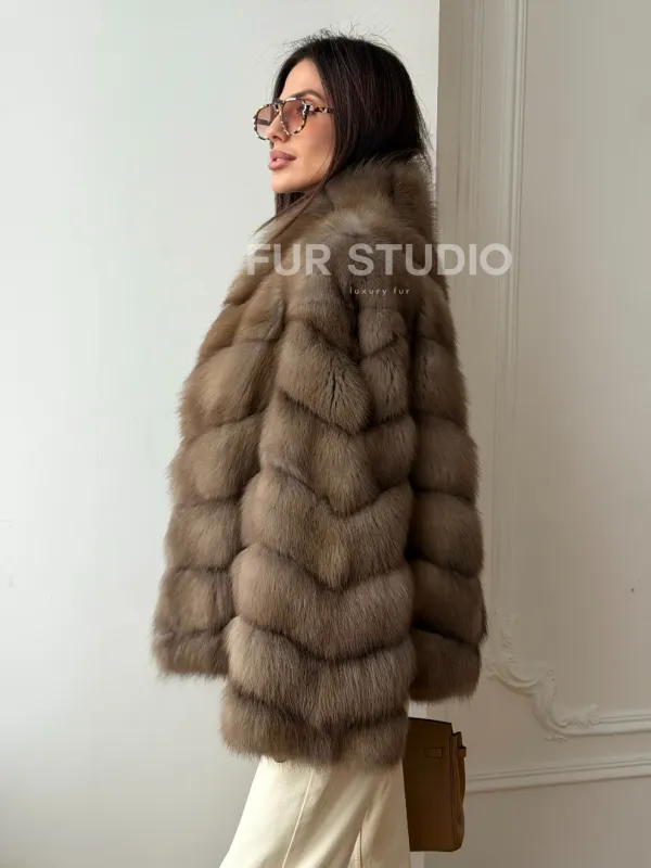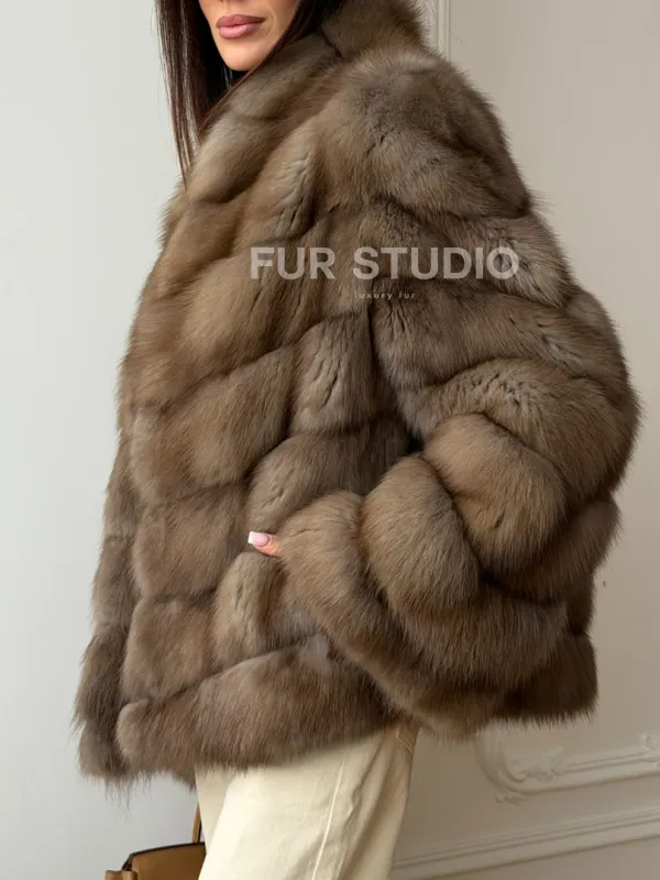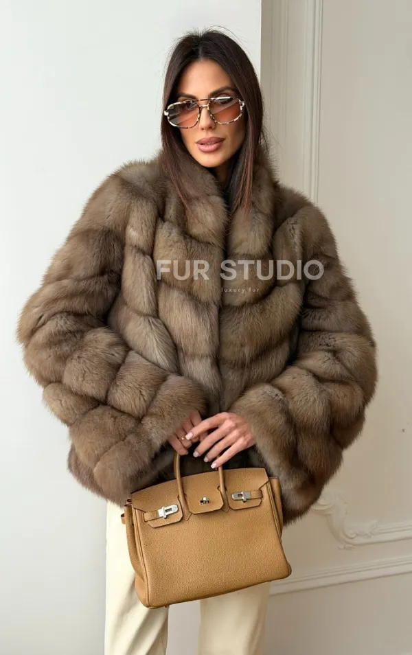 Шуба из меха куницы - рукава косичкой 102565