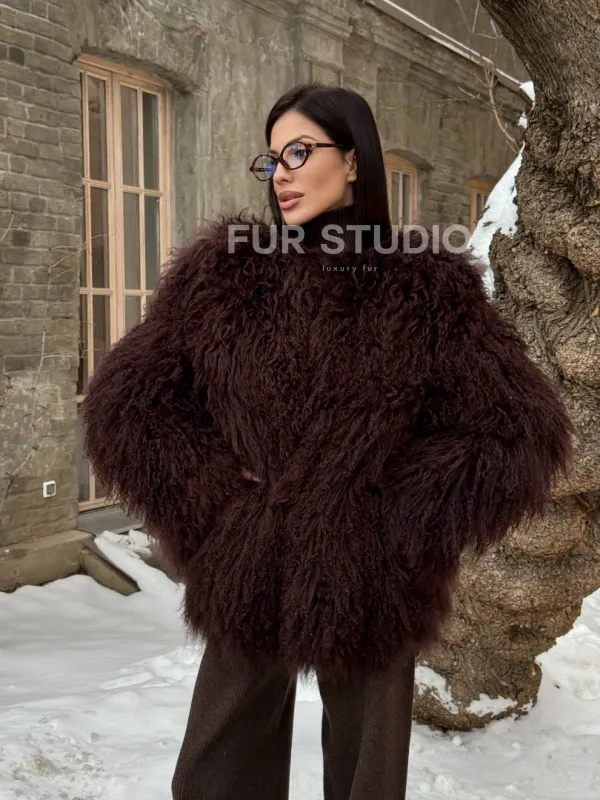 Шуба коричневая из меха ламы 101440
