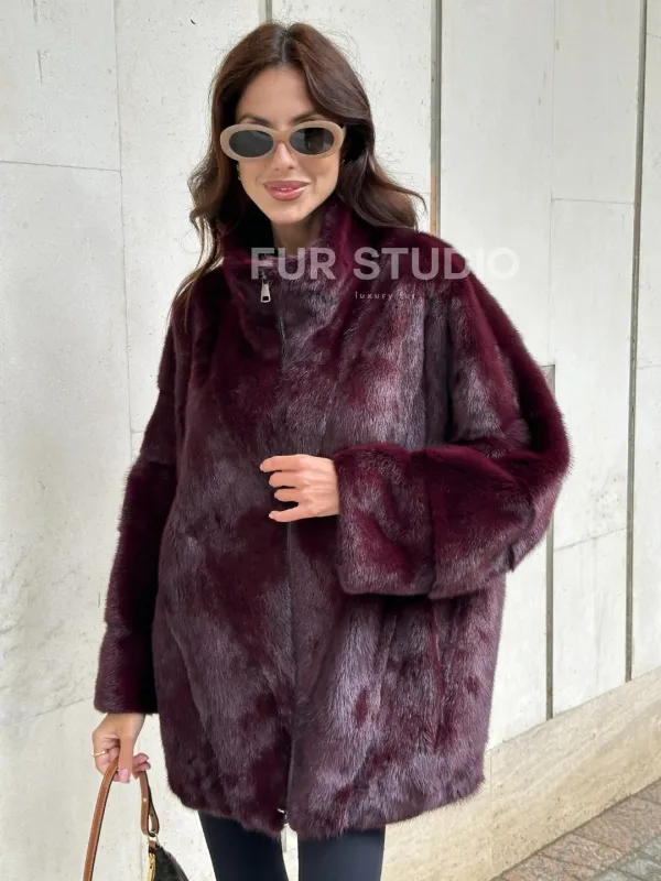Женская норковая курточка - цвет бордо 100924